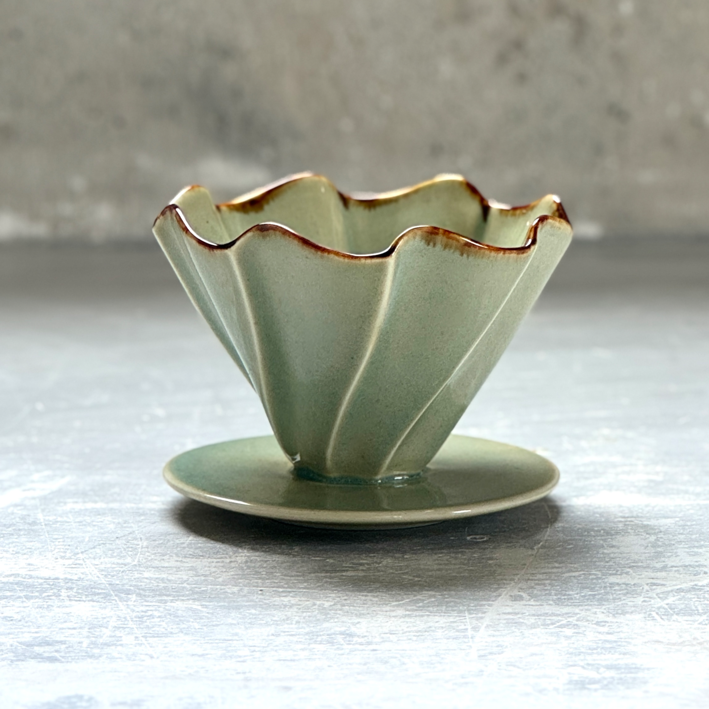 自分が使いたいと思うアイテムを中心に、食器やオブジェを制作しています。 電動ろくろや石膏の型などを使用したさまざまな成形方法を用いつつ、釉薬は青磁釉をベースに統一し、少しづつ調合を変えることで色や質感を変えています。 どうやって使おうか、どんな料理をのせようか、想像しながら作品をご覧いただけるととても嬉しいです。