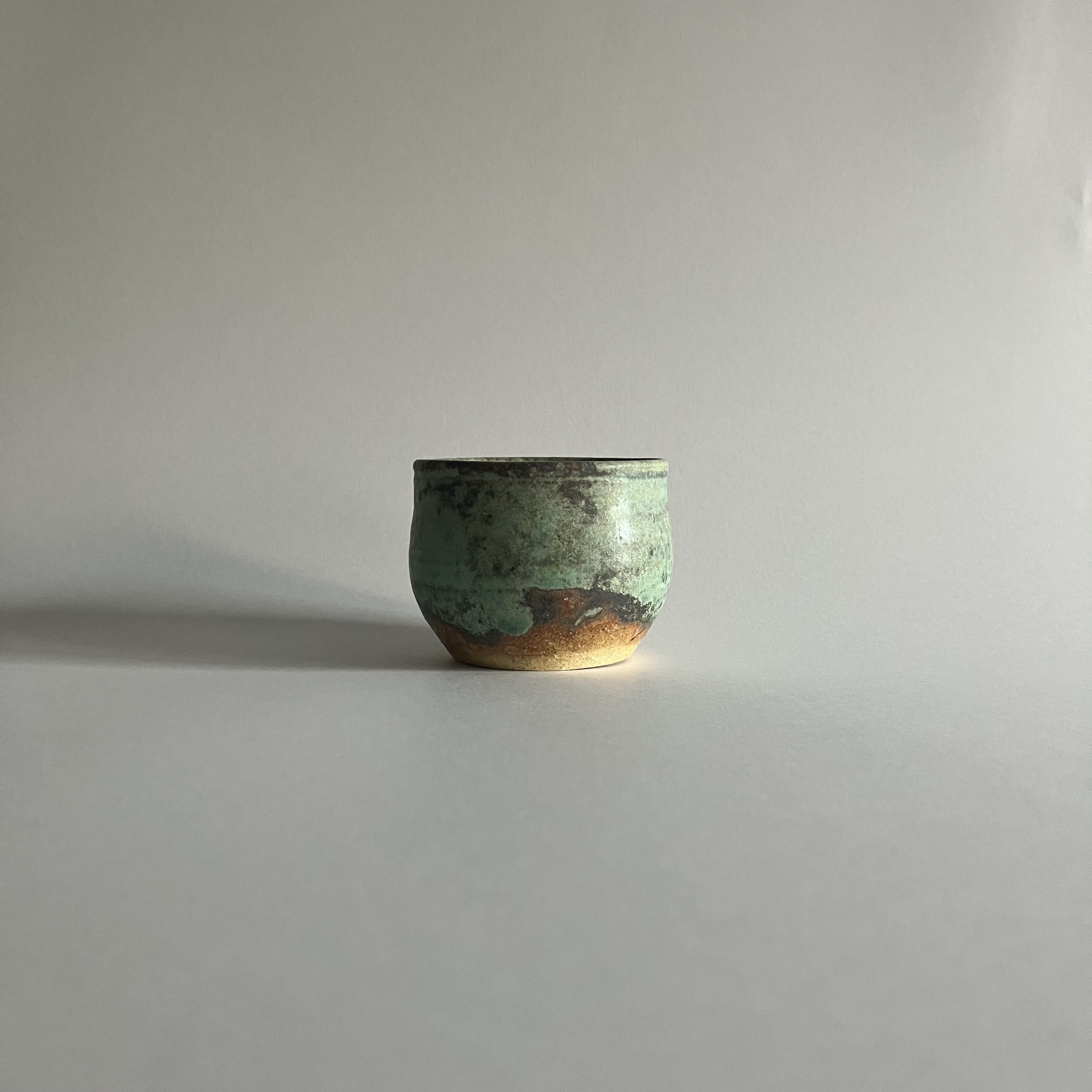 こぶ志窯の象徴的な釉薬である海鼠釉(なまこゆう)の青が美しい温かみのあるカップです。